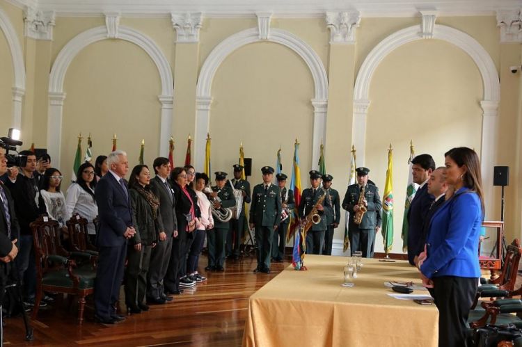 Hər iki ölkənin dövlət himnləri parlamentin orkestri tərəfindən canlı ifa edildikdən sonra Azərbaycanın Kolumbiyadakı müvəqqəti işlər vəkili Həmid Zeynalov iştirakçılara ölkəmizin şanlı müstəqillik tarixi barədə məlumat verib.