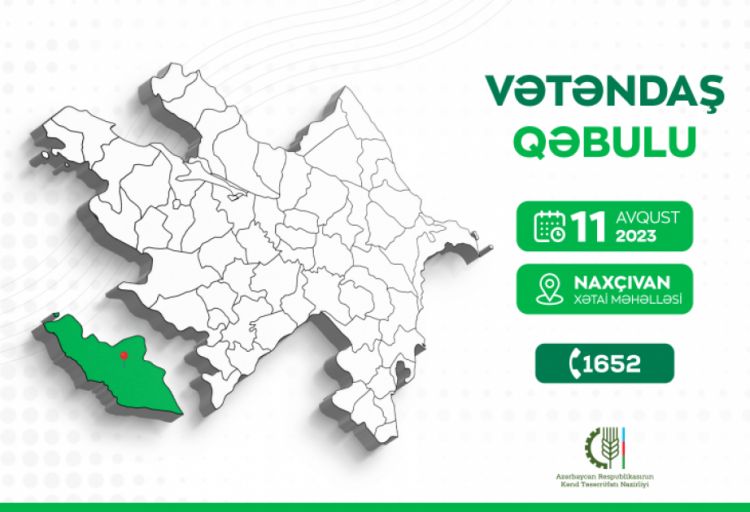 Azərbaycan Respublikasının kənd təsərrüfatı naziri Məcnun Məmmədov avqustun 11-i saat 09:00-da Naxçıvan Kənd Təsərrüfatı Elmi-Tədqiqat İnstitutunun inzibati binasında (ünvan: Naxçıvan şəhəri, Xətai məhəlləsi) Naxçıvan şəhəri, Babək, Culfa, Kəngərli, Ordubad, Sədərək, Şahbuz və Şərur rayonlarından olan vətəndaşlarla görüşəcək.