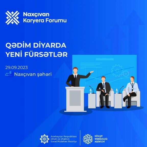 Əmək və Əhalinin Sosial Müdafiəsi Nazirliyinin tabeliyində Dövlət Məşğulluq Agentliyinin təşkilatçılığı ilə sentyabrın 29-da Naxçıvan şəhərində “Qədim diyarda yeni fürsətlər” devizi altında Karyera Forumu keçiriləcək.