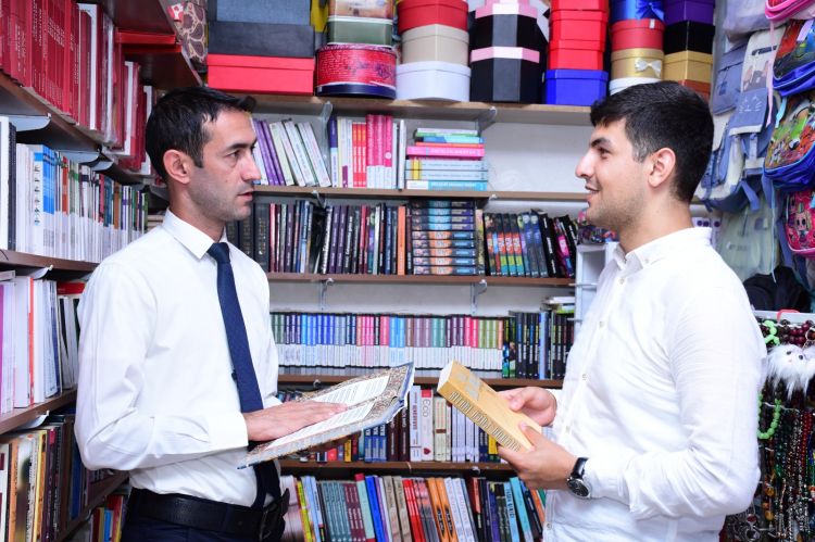 Mağazanın müxtəlif hissələrində bir böyük və iki kiçik kitab rəfi yerləşir. Böyük rəflərdə yer tutan, bəlkə də, minə yaxın kitabın hər biri ya türk ədəbiyyatı nümunəsidir, ya da xarici ölkələr ədəbiyyatından türk dilinə tərcümə edilmiş kitablardır. Ən başdakı kiçik kitab rəfində isə Azərbaycan ədəbiyyatı nümunələri oxucularını gözləyir. Bu guşədə isə kitabların sayı iki yüzü keçə, ya keçməyə.