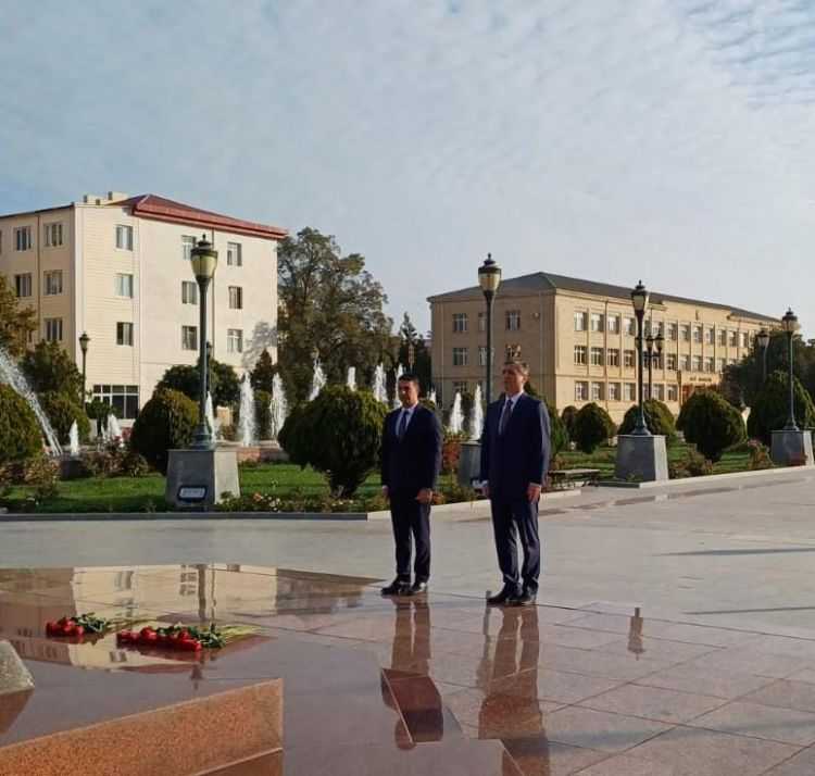 Qonaqlar əvvəlcə ümummilli lider Heydər Əliyevin Naxçıvan şəhərinin baş meydanında əzəmətlə ucalan abidəsini ziyarət edib, önünə gül dəstələri qoyub, dahi şəxsiyyətin xatirəsini ehtiramla yad ediblər