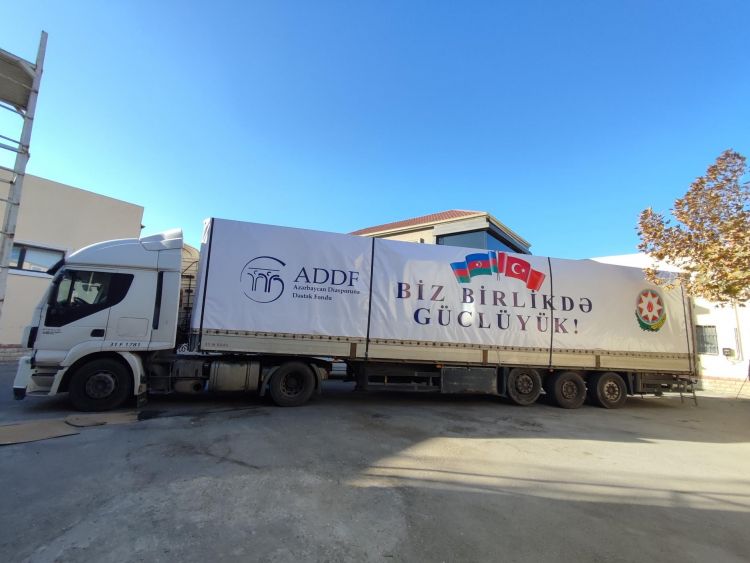 Bildirilib ki, içərisində 6200 yorğan və adyal, 175 kondisioner, 1500 ədəd isidici, eyni zamanda, yemək bişirmək üçün 1000 soba olan iki TIR Kahramanmaraş rayon Təbii Fəlakət və Fövqəladə Hallar Agentliyinin (AFAD) Regional Mərkəzinə yola salınıb.