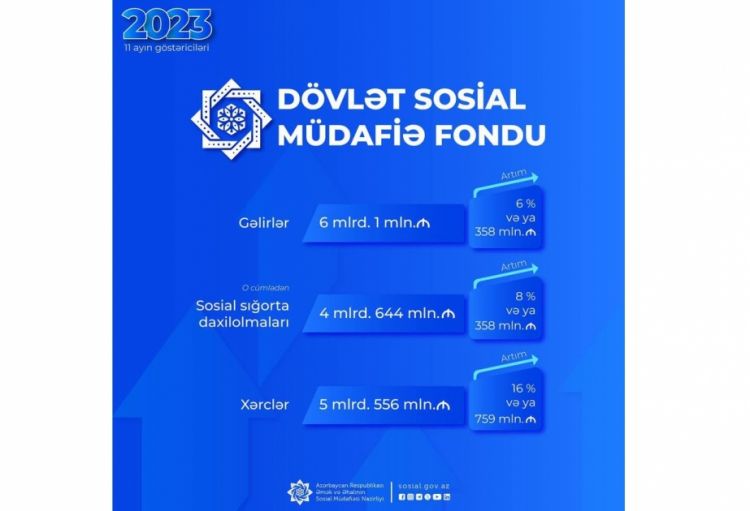 Əmək və Əhalinin Sosial Müdafiəsi Nazirliyinin tabeliyindəki Dövlət Sosial Müdafiə Fondunun (DSMF) gəlirləri bu ilin 11 ayında proqnozla müqayisədə 6 faiz və ya 358 milyon manat çox olmaqla 6 milyard 1 milyon manat təşkil edib.
