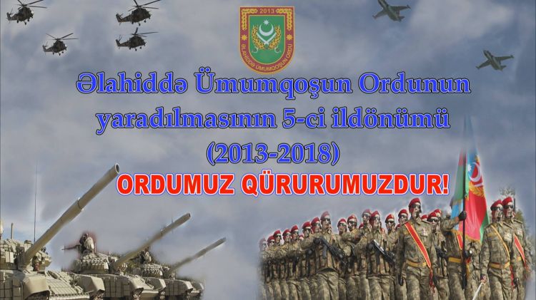 NUHÇIXAN xəbər verir ki, Əlahiddə Ümumqoşun Ordunun yaradılmasının 5-ci ildönümü münasibəti ilə silsilə tədbirlər keçirilib. Belə ki, Naxçıvan Qarnizonunun şəxsi heyəti ilə Əlahiddə Ümumqoşun Ordunun Təlim-Tədris Mərkəzində “Ordumuz qürurumuzdur” mövzusunda keçirilən tədbirdə ümummilli lider Heydər Əliyevin əsasını qoyduğu ordu quruculuğundan danışılıb. Tədbirdə Əlahiddə Ümumqoşun Ordunun zabitləri Naib Cəfərov və Zaur Həmidov, əsgər Sərvan Səfərov, Azərbaycan Vətən Müharibəsi Veteranları və Şəhid Ailələri Naxçıvan Muxtar Respublika Təşkilatının Naxçıvan Şəhər Şöbəsinin sədri Zahid Cəfərov çıxış edib. Bildirilib ki, Naxçıvan Muxtar Respublikasının müdafiə qabiliyyətinin daha da artırılması, bir mərkəzdən idarəetmənin təkmilləşdirilməsi məqsədilə Prezident, Ali Baş Komandan İlham Əliyevin “Azərbaycan Respublikası Müdafiə Nazirliyi haqqında Əsasnamənin təsdiq edilməsi barədə” 2013-cü il 18 dekabr tarixli Fərmanına əsasən, 5-ci Ordu Korpusunun əsasında Əlahiddə Ümumqoşun Ordu yaradılıb. Naxçıvan Muxtar Respublikası Ali Məclisi Sədrinin diqqət və qayğısı sayəsində uzun illər müxtəlif mərhələlərdən keçərək formalaşmış Əlahiddə Ümumqoşun Ordu bu gün yerləşdiyi coğrafi mövqeyə, kontingentinə və döyüş qabiliyyətinə görə keçmiş SSRİ və indiki MDB ölkələrinin silahlı qüvvələri səviyyəsində analoqu olmayan statusa malikdir. Əlahiddə Ümumqoşun Ordunun keçirdiyi və hərb tariximizə qızıl hərflərlə yazılan uğurlu “Günnüt əməliyyatı” Azərbaycan əsgərinin rəşadət əzmini bir daha bütün dünyaya nümayiş etdirdi.