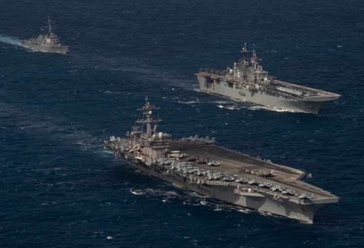 NUHÇIXAN xəbər verir ki, ABŞ Hərbi Dəniz Qüvvələrinin Karl Vinson və Teodor Ruzvelt adlı flaqman gəmiləri və Yaponiya Dəniz Özünümüdafiə Qüvvələrinin Hyuqa adlı helikopter daşıyan gəmisi manevrlər həyata keçirirlər.