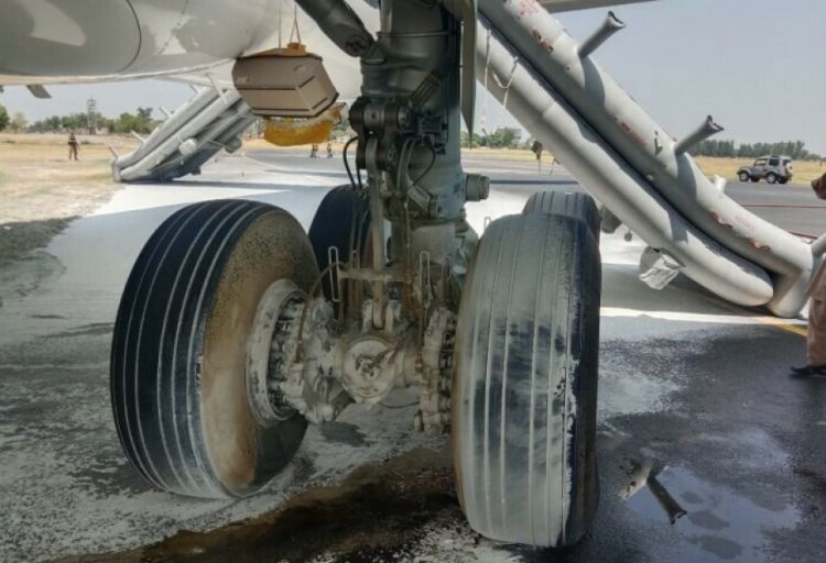 Pakistan Mülki Aviasiya Administrasiyasından bildiriblər ki, dispetçerlər yerə enən təyyarənin sol şassisinin tüstüləndiyini görüblər. Dərhal yanğınsöndürənlər çağırılıb və yanğın söndürülüb.