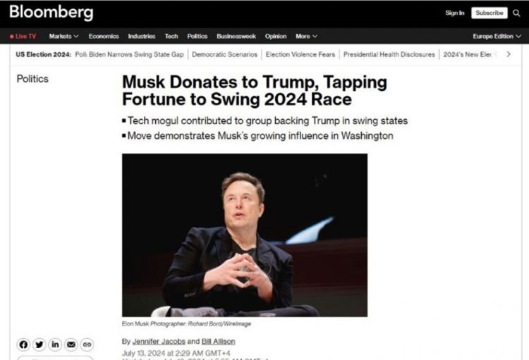 Əvvəllər Mask siyasi kampaniyalara sponsorluq etdiyini inkar edirdi. Milyarder bir sıra dünya agentliklərinin bu mövzuya yeni şərh vermək istəyini cavablandırmayıb.