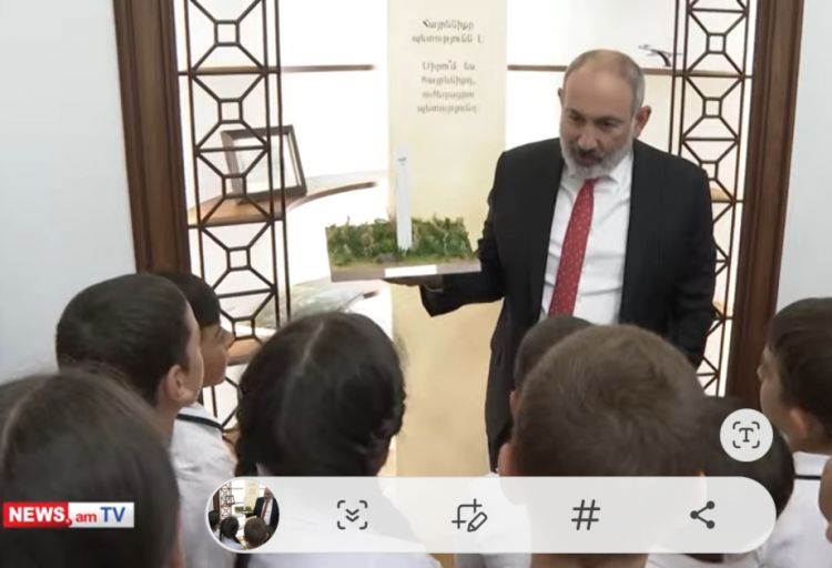 Ermənistanın baş naziri Nikol Paşinyan öz kabinetində orta məktəb şagirdləri ilə görüşüb. Hökumət başçısı məktəblilərə dövlət sərhədləri barədə məlumat verib, birinci sərhəd sütununun maketini göstərib.