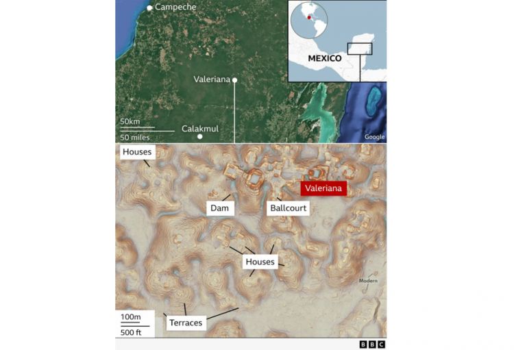 Onlar bitki örtüyü altında qalmış strukturları müəyyən edə bilən radar görüntüləmə növü olan lidardan istifadə edərək, yaxınlıqdakı laquna əsasında Valeriana adlandırdıqları gizli kompleksi kəşf ediblər. O, ölçüsünə görə qədim Latın Amerikasında ən böyük Mayya məskəni sayılan Kalakmuladan sonra ikinci yerdədir.