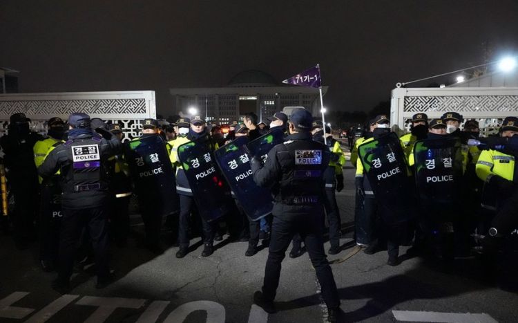 Cənubi Koreyada yüzlərlə sakin hərbi vəziyyətin tətbiqinə etirazlarını bildirmək üçün Seuldakı Milli Assambleyanın qarşısına toplaşıb.