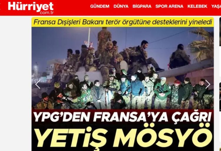 NUHÇIXAN xəbər verir ki, bu barədə Türkiyənin “Hürriyət” qəzeti “YPG-nin Fransaya çağırışı: Bizə gəlin, müsyö” sərlövhəli məqaləsində bildirilir.