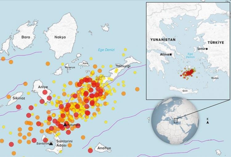 Məlumatlara əsasən, yanvarın 26-dan etibarən Egey dənizində 800-ə yaxın yeraltı təkan qeydə alınıb. Zəlzələlər Yunanıstanın Santorini adasının təxminən 25 kilometr şimal-şərqində, 5-25 kilometr dərinliklərdə baş verib.