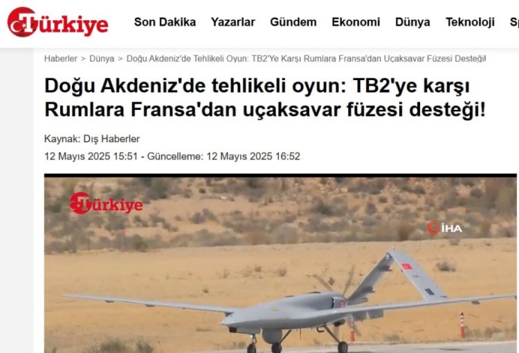 “Bayraktar TB2” PUA-ları Liviya, Suriya və Azərbaycanın Qarabağ bölgəsi də daxil olmaqla yüksək effektivliyi və manevr qabiliyyətini sübut edib. Mütəxəssislər Fransanın “Mistral 3”lərinin Türkiyə pilotsuz təyyarələrinə qarşı effektivliyinə şübhə ilə yanaşırlar”, -deyə nəşr yazır.
