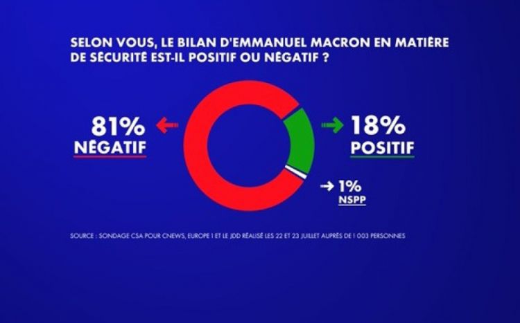 Fransada prezident Emmanuel Makronun təhlükəsizlik sahəsində fəaliyyəti əhalinin böyük əksəriyyəti tərəfindən mənfi qiymətləndirilir.