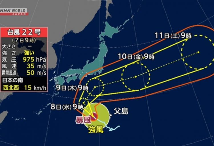 NUHÇIXAN xəbər verir ki, Yaponiyanın meteoroloji rəsmiləri hazırda tayfunun saatda 15 kilometr sürətlə hərəkət etdiyini, onun mərkəzində isə küləyin sürətinin saatda 144 kilometrə çatdığını açıqlayıb. Proqnozlara görə, qasırğanın küləyinin sürəti saatda 198 kilometrə çata bilər.