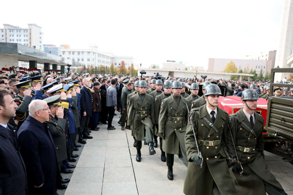 Hərbçilərin cənazə namazı Ankaradakı Ahmet Hamdi Akseki məscidində qılınıb. Tədbirdə yüzlərlə insan, o cümlədən Türkiyə Parlamentinin sədri Numan Kurtulmuş, vitse-prezident Cevdet Yılmaz, milli müdafiə naziri Yaşar Güler, xarici işlər naziri Hakan Fidan və digərləri iştirak ediblər.