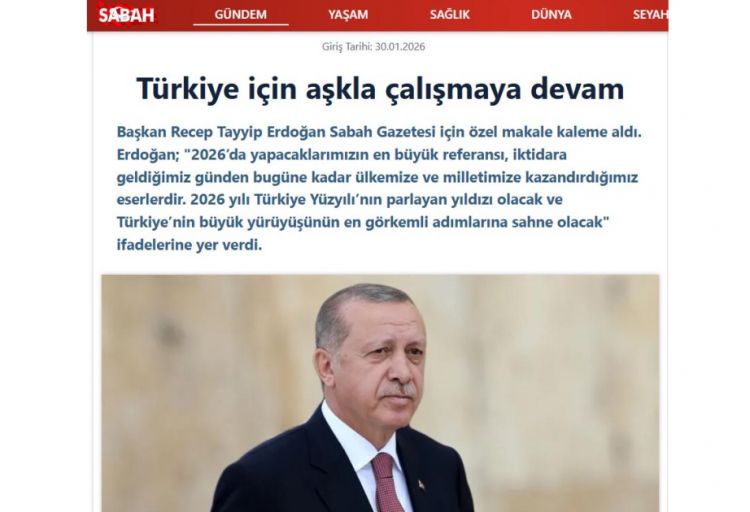 NUHÇIXAN xəbər verir ki, bu barədə Türkiyə Prezidenti Rəcəb Tayyib Ərdoğan yanvarın 30-da “Sabah” qəzetində dərc olunmuş məqaləsində yazıb.