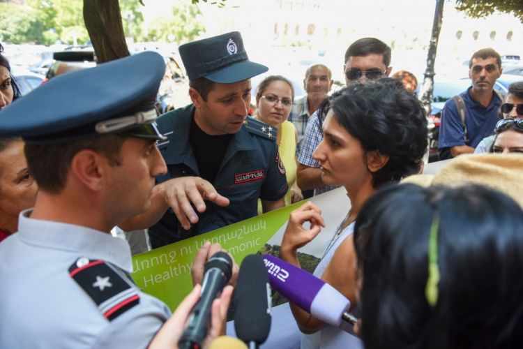 Polis hökumət binasına zorla daxil olmaq istəyən aksiya iştirakçılarının qarşısını alıb və bildirib ki, bu ərazi xüsusi mühafizə olunan obyektdir. Hazırda qanun keşikçiləri ilə etirazçılar arasında qarşıdurmanın davam etdiyi bildirilir.