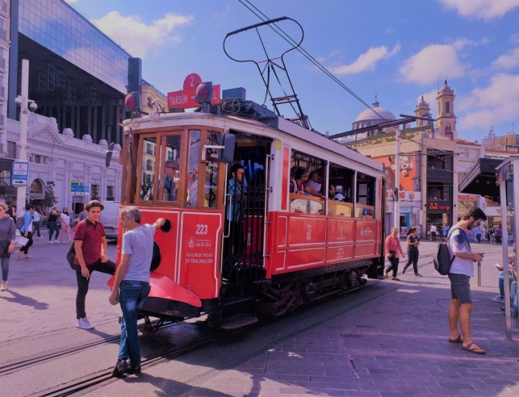 “Taksim” meydanını tramvaysız təsəvvür etmək mümkün deyil. Şəhərin Azadqapı-Beşiktaş bölgələri arasında fəaliyyət göstərən ilk tramvay 1871-ci ildə atlar vasitəsilə hərəkət etdirilib. 1912-ci ildə Balkan savaşının başlaması ilə ölkədəki bütün atlar, o cümlədən tramvay xəttində istifadə edilən atlar da cəbhəyə göndərilib. Bu səbəbdən iki il ərzində İstanbulda tramvay sisteminin fəaliyyəti dayandırılıb. 1913-cü ildə “Silahtarağa” elektrik fabrikinin qurulması ilə Türkiyədə elektrikli tramvayların istehsalına başlanılıb. Bununla da ikiillik fasilədən sonra 1914-cü il fevralın 11-də İstanbulda yenidən tramvayların fəaliyyəti bərpa olunub. İstanbulun məşhur “İstiqlal Caddesi”nin əvəzolunmaz rəmzinə çevrilən Taksim tramvayının fəaliyyəti bu müddətdə inkişaf edən texnologiya və şəhərin yenilənməsi işləri ilə əlaqədar iki dəfə-1961-ci və 1966-cı illərdə dayandırılıb.
