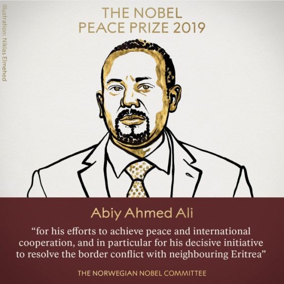 2019-cu il üzrə Nobel Sülh mükafatı sülhə və beynəlxalq əməkdaşlığa nail olmaq üçün göstərdiyi səylərə və xüsusən qonşu Eritreya ilə sərhəd münaqişəsinin həlli ilə bağlı qətiyyətli təşəbbüsünə görə Efiopiyanın Baş Naziri Abiy Əhməd Əliyə verilib.