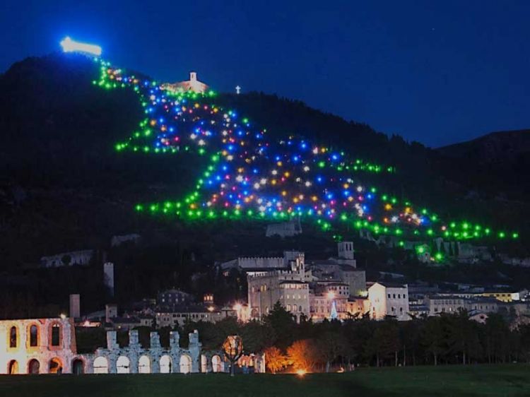 Şəhərin ətrafındakı İncino dağının ətəyində quraşdırılan hündürlüyü 750 metr, eni 450 metr olan Yeni il yolkasında rəngarəng işıqlandırma sistemi mövcuddur. Belə ki, həmin sistemdə 700-dən çox elektrik kabeli ilə birləşdirilən neon lampalarından istifadə olunub. Yolkanın zirvəsində hər beş dəqiqdən bir rəngini dəyişən Yeni il ulduzu var. Neon lampaları olan yolka Qubbio şəhərində artıq 38 ildir quraşdırılır. Onu ilk dəfə könüllülər qurublar. Qubbionun “Yeni il gözəlini” dünyanın ən böyük yolkası kimi 1991-ci ildə Ginnesin Rekordlar Kitabına daxil ediblər. 2014-ci ildə isə onun işıqlarını Roma Papası Fransisk yandırıb. Yolkanın rəngarəng işıqları yanvarın sonuna qədər şəhər sakinlərinin və qonaqların gözünü oxşayacaq.