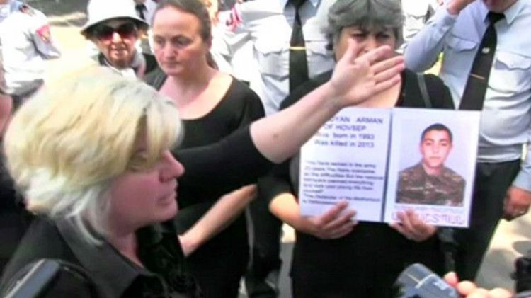 Ermənistanda əsgər anaları hökumət binasının qarşısında etiraz aksiyası keçirirlər.