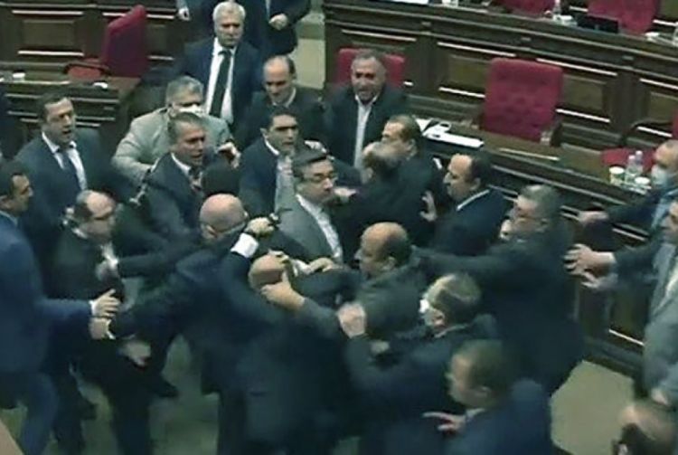 Ermənistan parlamentinin deputatları hökumət üzvlərinin qarşısında kütləvi dava salıb.