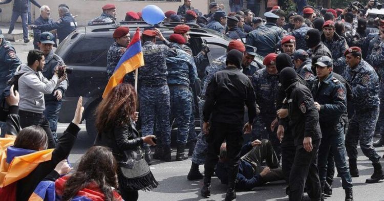 Yerevanda keçmiş hərbçilər Müdafiə Nazirliyinin qarşısında etiraz akiyası keçirir.