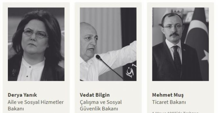 NUHÇIXAN İnformasiya Agentliyi “Rəsmi qəzetə”yə istinadla xəbər verir ki, Dərya Yanık Ailə, Əmək və Sosial Xidmətlər naziri, Vedat Bilgin Əmək və Sosial Müdafiə naziri, Mehmet Muş isə Ticarət naziri təyin olunub.