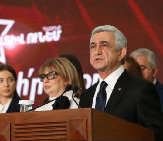 Ermənistanın keçmiş prezidenti, müxalif “Respublika Partiyası”nın rəhbəri Serj Sarkisyan adının "Mənim Qürurum Var" blokunun seçki siyahısında olmayacağını bildirib. NUHÇIXAN İnformasiya Agentliyi Ermənistana məxsus armenianreport.com saytında yayımlanan məlumata istinadən xəbər verir ki, bu barədə eks-prezident jurnalistlərə açıqlamasında deyib.