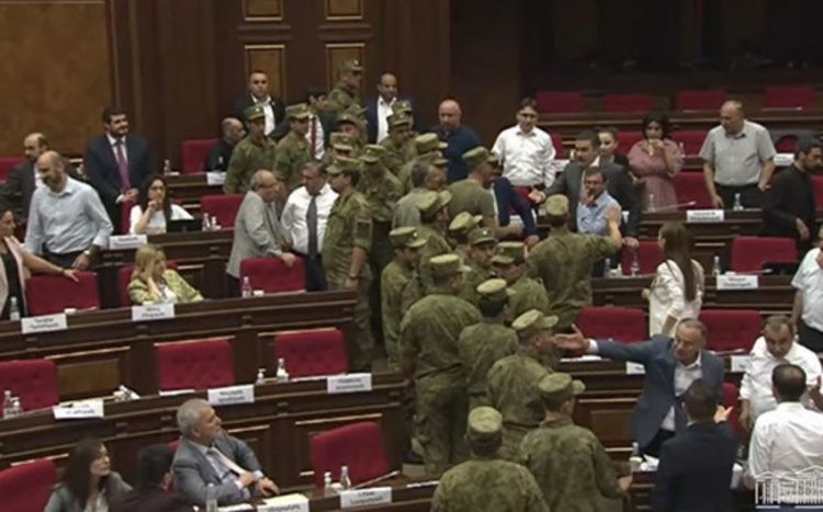 Ermənistan parlamentində deputatlar arasında qarşıdurma yaranıb.