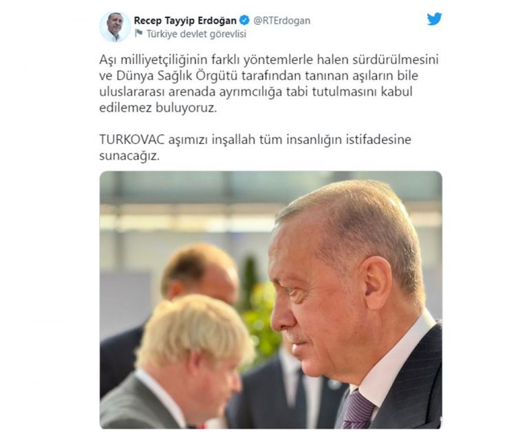 “İnşallah TURKOVAC peyvəndimizi bütün bəşəriyyətin istifadəsinə təqdim edəcəyik”, - Türkiyə lideri əlavə edib.