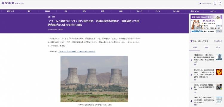 Məqalədə, həmçinin bu AES-in Rusiya dövlət atom energetikası agentliyi tərəfindən yenidən qurulması və onun istifadə müddətinin 2036-cı ilədək uzadıldığı barədə də məlumat verilir. Qeyd edilir ki, bu başqa enerji mənbələrinə malik olan Ermənistanı müvəqqəti də olsa enerji çatışmazlığından qorumağa xidmət etsə də, həm yerli sakinləri, həm də qonşu ölkələri böyük təhlükə ilə üz-üzə qoyur.