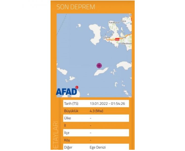 Egey dənizinin Türkiyənin İzmir vilayətinin Urla rayonu sahilində 4,3 bal gücündə zəlzələ baş verib.