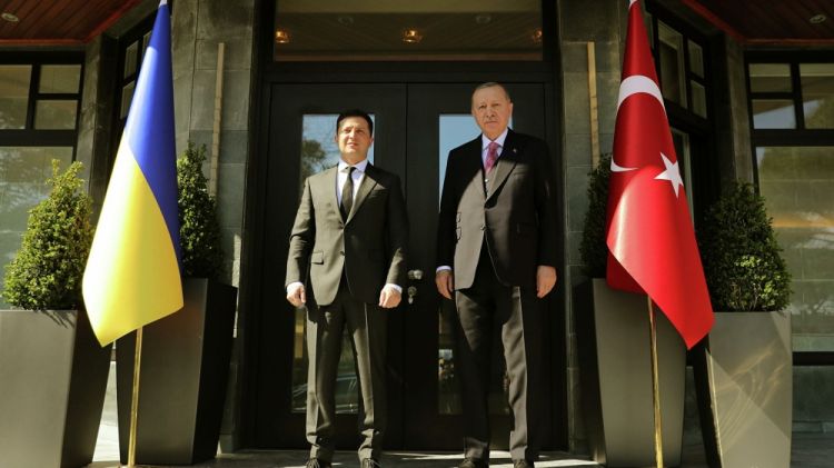 Ukrayna Prezidenti Volodimir Zelenski və birinci xanım Yelena Zelenskaya Kiyevdə Marinski Sarayında Türkiyə Respublikasının Prezidenti Rəcəb Tayyib Ərdoğan və xanımı Əminə Ərdoğan ilə görüşüblər.