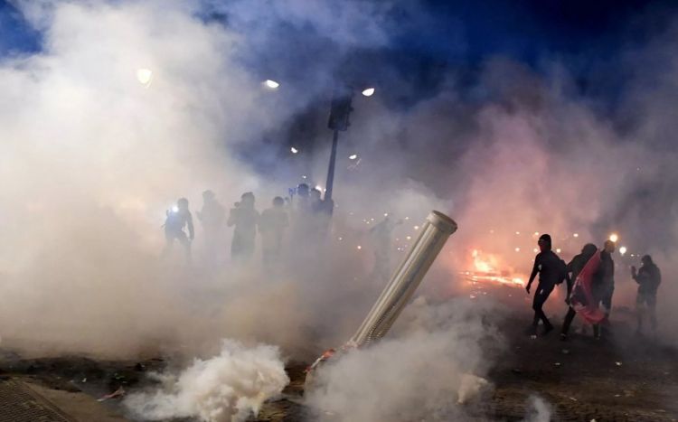 Bu xəbərin yayılmasından sonra vəziyyət kəskin şəkildə gərginləşib, etirazçılar asayiş keşikçilərini təhqir etməyə, zibil qutularını yandırmağa, polisə daş və butulka atmağa başlayıblar.