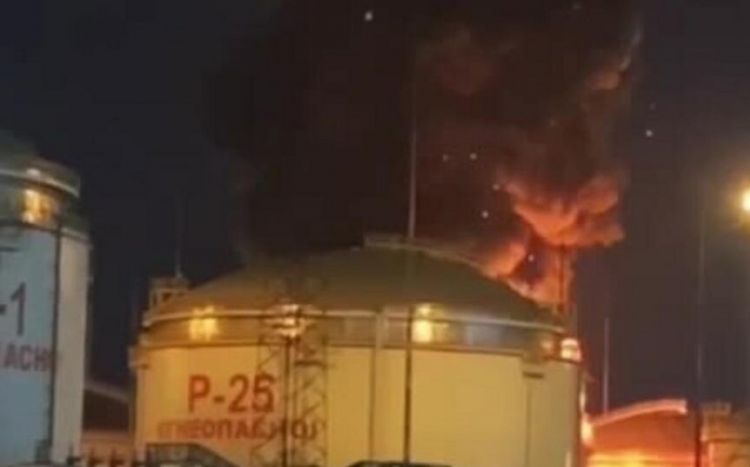 Rusiyanın Krasnodar diyarının Taman limanı yaxınlığındakı neft məhsulları rezervuarı alışıb.