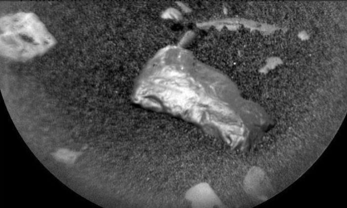 Marsda özü yeriyən "Curiosity" aparatı Qırmızı planetin səthində parıldayan külçəyə bənzər qeyri-adi cism aşkar edib.