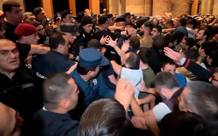 Ermənistan polisi ölkənin Baş naziri Nikol Paşinyanın istefası tələbi ilə Nazirlər Kabinetinin qarşısına toplaşan etirazçılara qarşı xüsusi vasitələrdən, o cümlədən səs qumbaralarından istifadə etməyə başlayıb.