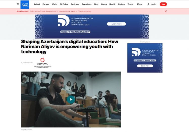 “Euronews” xəbər kanalı Azərbaycanda rəqəmsal təhsilə həsr olunmuş videoçarx hazırlayıb.