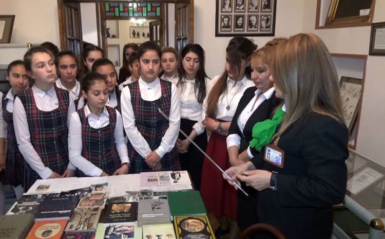 Naxçıvan Qızlar Liseyinin şagirdləri Cəlil Məmmədquluzadənin “Lisan bəlası”, “Ana dili” əsərlərindən bir parçanı səsləndiriblər.
