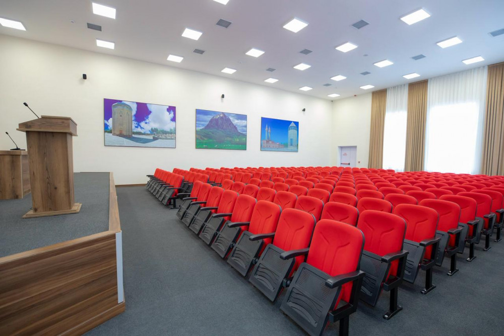 Bildirilib ki, foyedə Ümummilli Lider Heydər Əliyevin və Prezident İlham Əliyevin təhsil ictimaiyyəti ilə görüşləri və bu sahədə həyata keçirilən islahatları əks etdirən fotoguşələr yaradılıb.