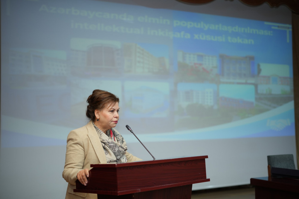 AMEA-nın həqiqi üzvü, akademik Muxtar İmanov çıxışında “Elmin populyarlaşdırılması” layihəsinin əhəmiyyətindən bəhs edərək bu layihənin elmin kütləviləşdirilməsində oynadığı roldan bəhs edib. Azərbaycan dilinin qorunması, saflaşdırılması məsələlərinə toxunub.