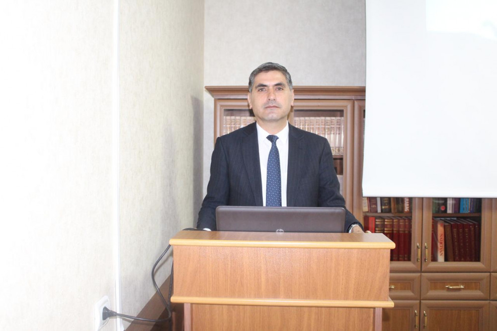 Daha sonra Tarix, Etnoqrafiya və Arxeologiya İnstitutunun aparıcı elmi işçisi, tarix üzrə fəlsəfə doktoru, dosent Asəf Orucov “Xocalı: soyqırımdan inkişafa doğru” mövzusunda məruzə edib. Məruzəçi Xocalı soyqırımı ərəfəsində bölgədə baş verən ictimai-siyasi prosesləri təhlil edib, faciənin səbəb və nəticələrini tarixi faktlar əsasında diqqətə çatdırıb. O, Prezident İlham Əliyevin rəhbərliyi ilə 44 günlük Vətən müharibəsində qazanılan tarixi Qələbənin ölkəmizin ərazi bütövlüyünün və suverenliyinin bərpasını təmin etdiyini vurğulayıb. Həmçinin lokal xarakterli antiterror tədbirləri nəticəsində dövlət suverenliyinin tam bərqərar olunduğunu qeyd edərək, bu mərhələnin Xocalı da daxil olmaqla işğaldan azad edilmiş ərazilərin sosial-iqtisadi və mədəni inkişafı üçün geniş perspektivlər açdığını bildirib. Məruzədə Xocalının zəngin tarixi-mədəni irsi, qədim yaşayış məskəni kimi regionun tarixində tutduğu mühüm yer xüsusi vurğulanıb.