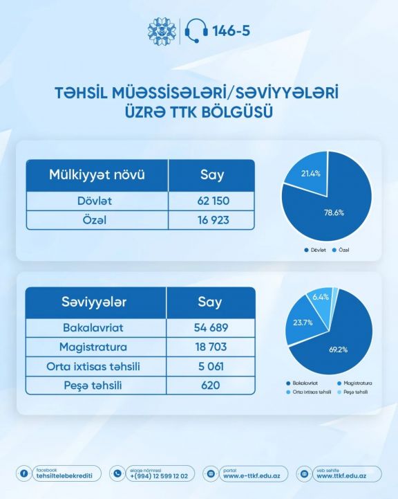 Ən böyük müqavilə sayı 54 689 kreditlə bakalavriat pilləsinə məxsusdur. Magistratura səviyyəsində 18 703, orta ixtisas təhsili üzrə 5 061, peşə təhsili üzrə isə 620 kredit müqaviləsi imzalanıb.