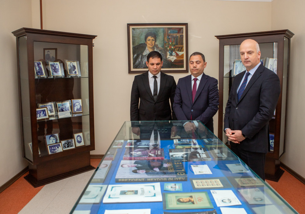 Əvvəlcə tədbir iştirakçıları görkəmli akademikin məktəbin foyesindəki büstü önünə gül dəstələri qoyub, alimin həyat və fəaliyyətini əks etdirən muzeylə tanış olublar.