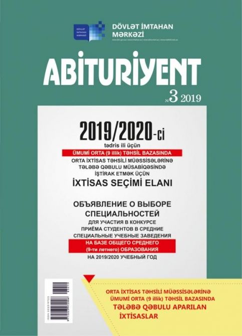Dövlət İmtahan Mərkəzindən (DİM) NUHÇIXAN-a bildirilib ki, bu nömrədə 2019/2020-ci tədris ili üçün Azərbaycan Respublikasının ümumi orta (9 illik) təhsil bazasında orta ixtisas təhsili müəssisələrinə tələbə qəbulu müsabiqəsində iştirak etmək üçün ixtisas seçimi elanı, qəbul aparılan ixtisaslar, onların plan yerləri, elektron ərizə verən abituriyent üçün təlimat, "Abituriyentin elektron ixtisas seçimi ərizəsi"nin nümunəsi və digər zəruri materiallar Azərbaycan və rus dillərində təqdim olunub.