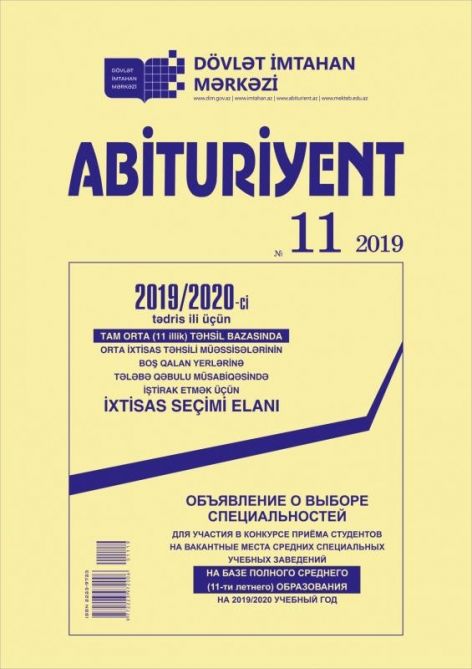 Dövlət İmtahan Mərkəzi (DİM) “Abituriyent” jurnalının 11-ci nömrəsini nəşr edib.