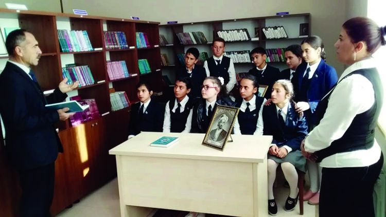 Tədbirin sonunda məktəbin şagirdləri İmadəddin Nəsiminin qəzəllərini bədii qiraət edib, böyük şairin yaradıcılığına həsr olunmuş sərgiyə baxıblar.