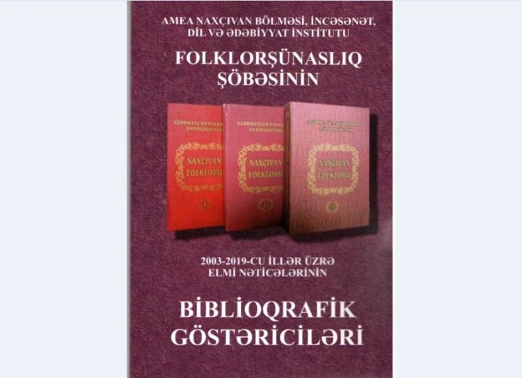 AMEA Naxçıvan Bölməsinin İncəsənət, Dil və Ədəbiyyat İnstitutu tərəfindən “Folklorşünaslıq şöbəsinin 2003-2019-cu illər üzrə elmi nəticələrinin biblioqrafik göstəriciləri” kitabı işıq üzü görüb.
